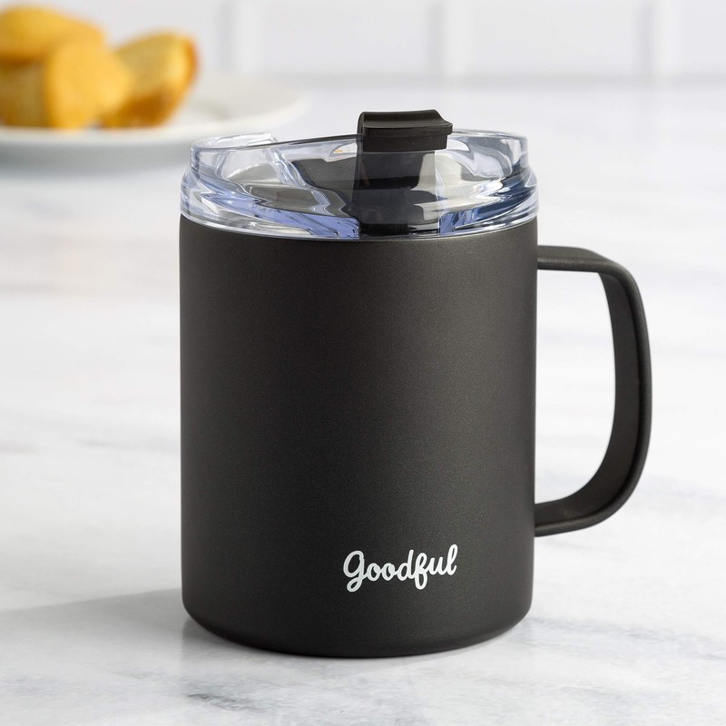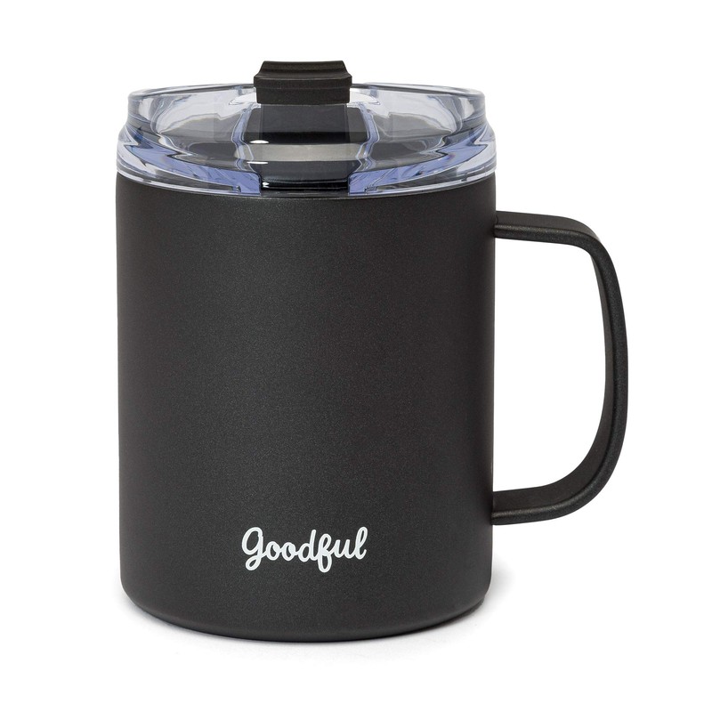Goodful - Taza de café sellada al vacío de doble pared con aislamiento de acero inoxidable con tapa a prueba de fugas, vaso de viaje, 14 oz, gris