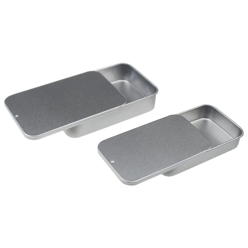 • Contains a total of 24pcs mixed sizes empty rectangular metal tins with slide top lids, 2 sizes to choose from for your projects, each size with 12pcs tins.