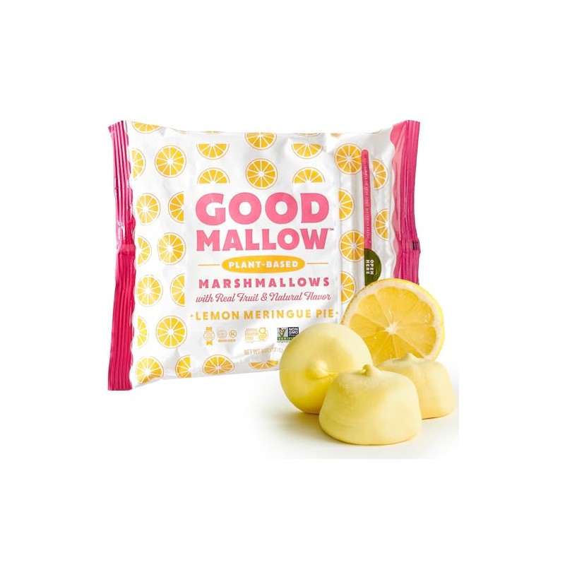 GoodMallow Vegan Marshmallows - Large Kosher Halal Gluten Free Dairy Free Healthy- Natural Gelatin Free Marshmallows for Hot Chocolate, Smores, Baking - Nothing Artificial (Yellow Lemon Mirangue)