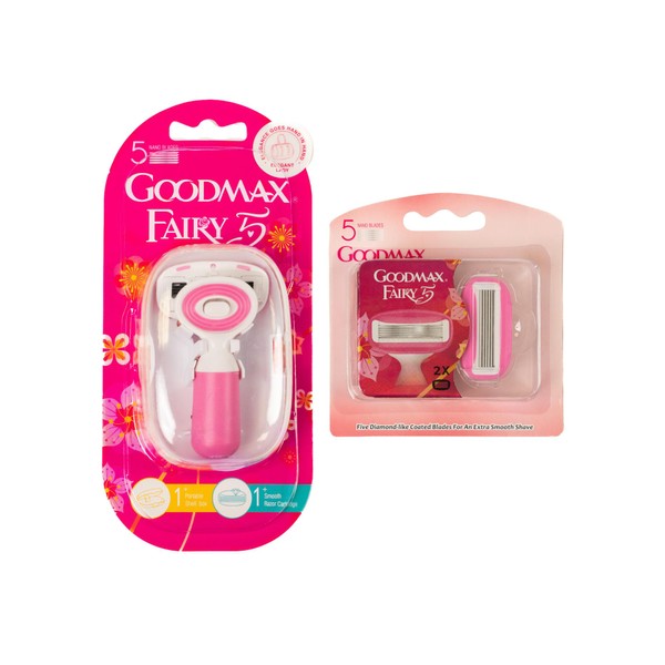 Goodmax Fairy Mini Women's Razor Set, Travel Size with Case, Includes 2 Replacement Cartridges, Pink or Yellow