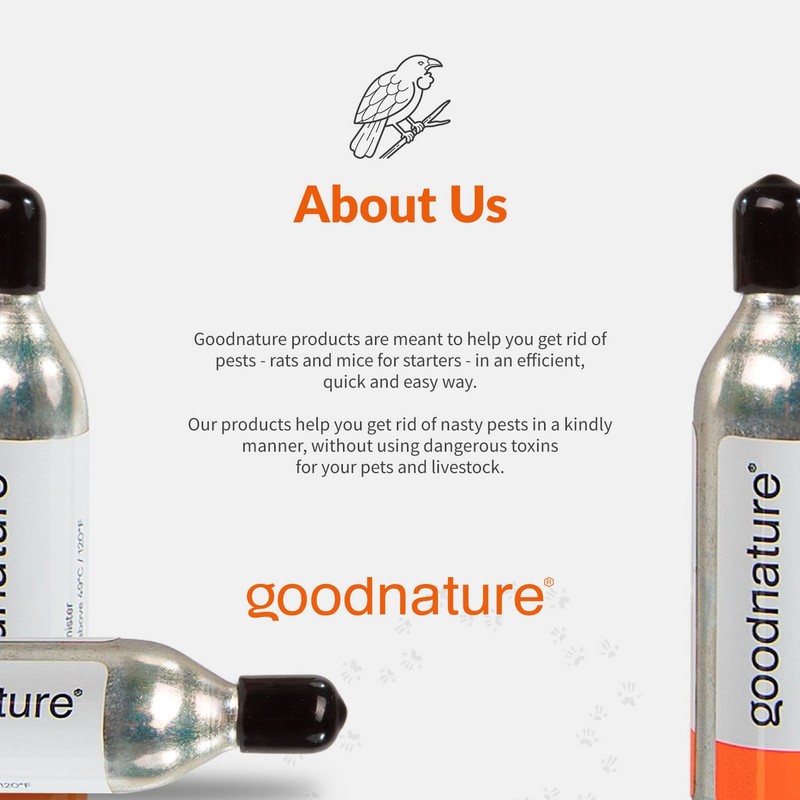 - About Us - Goodnature products are meant to help you get rid of pests - rats and mice for starters - in an efficient, quick and easy way; Our products help you get rid of nasty pests in a kindly manner, without using dangerous toxins for your pets and home animals