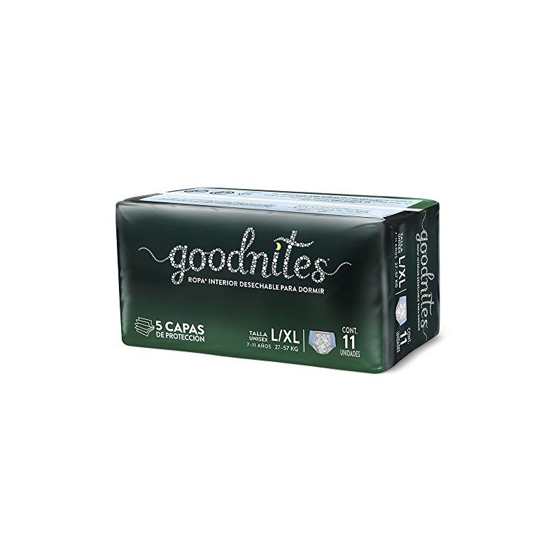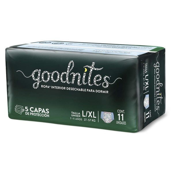 Goodnites - GoodNites Calzoncitos Desechables para Dormir, Talla Grande Unisex-Niño, Paquete con 11 piezas, Ideal para niños de 8 a 14 años
