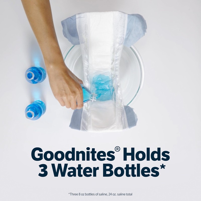 Help your kids wake up dry with Goodnites Nighttime Underwear, the #1 nighttime underwear,* now available in a new XXL size!, These nighttime underwear are made with Quicksorb Protection for up to 100% leak-free nights no matter how your child sleeps. Designed specifically for bedwetting, Goodnites nighttime underwear are clinically proven for a better night's sleep.** Goodnites Girls' Nighttime Underwear is designed for a gap-free fit around the legs for comfortable overnight protection. Goodnites has zoned protection for girls, providing protection where girls need it the most. Not only that, but Goodnites holds 3 water bottles.*** Additionally, Goodnites overnight bedwetting underwear include odor absorbing material. Plus, these disposable, absorbent underwear are hypoallergenic and have no harsh ingredients. Goodnites bedwetting underwear provide an outstanding fit for kids 120-165 pounds. Goodnites are available in Size XS (28-43 lbs), Size S/M (43-68 lbs), Size L (68-95 lbs), Size XL (95-120 lbs) and Size XXL (120-165 lbs). Goodnites nighttime products are FSA/HSA-eligible in the US. (*Youth Pant category share data)(**vs. not wearing absorbent underwear) (***Three 8 oz. water bottles, 24 oz. total)