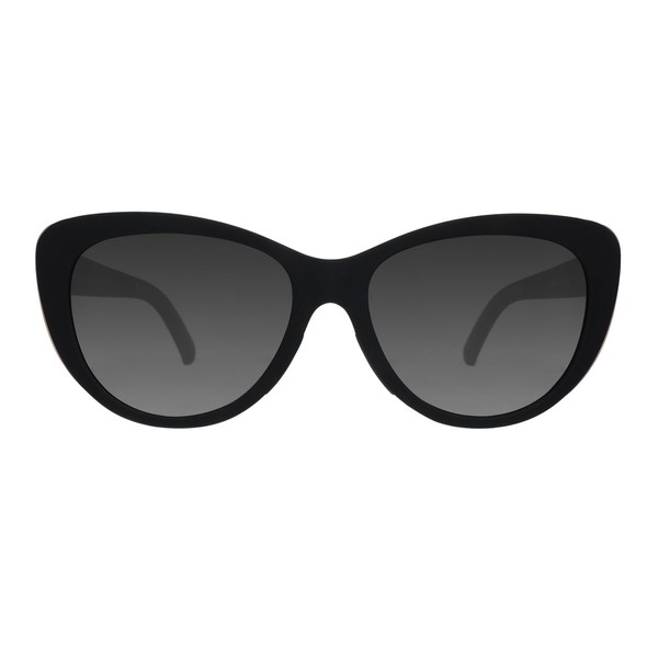 These black cat-eye sunglasses with black non-reflective lenses & light gold accents are giving fashion icon. Won't slip or bounce when vogueing down the catwalk or the sidewalk.
