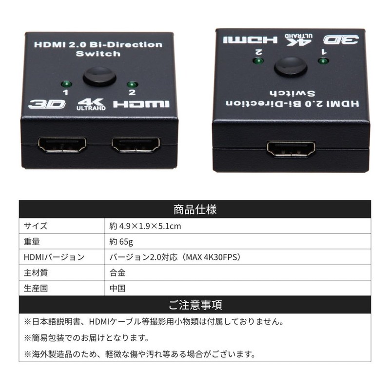 - (Two-way) Multi-functional selector supports two-way HDMI distribution and switching by changing the connection direction