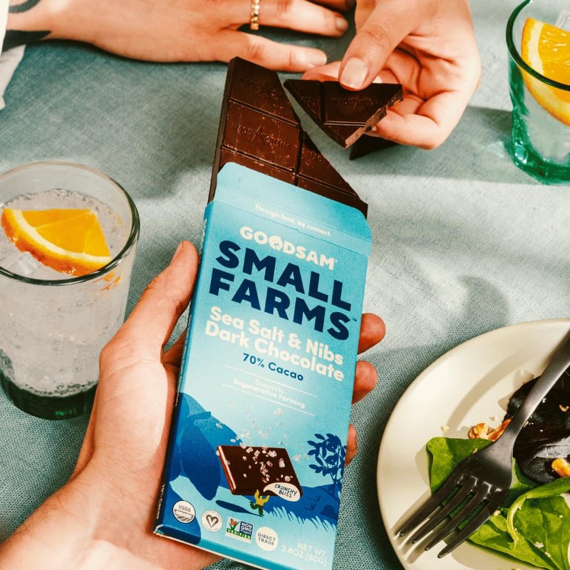 - BETTER CHOICE - Picking GOODSAM Sea Salt & Nibs 70% Dark Chocolate Bars are healthier for your body and conscience. We believe in providing the highest quality ingredients for our consumers, and a good quality of life for all of our farmers