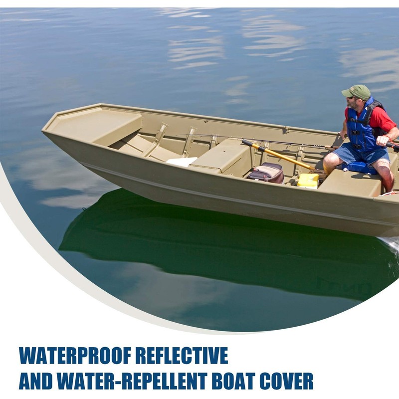 - 🚢 Made of 300D PU coated marine grade waterproof polyester, reinforcement panels under bow, windshield, stern and other strength stress points, all-weather protection, rear air vents at both sides to reduce water condensation and reduce wind pressure during trailering and storms and other bad weather