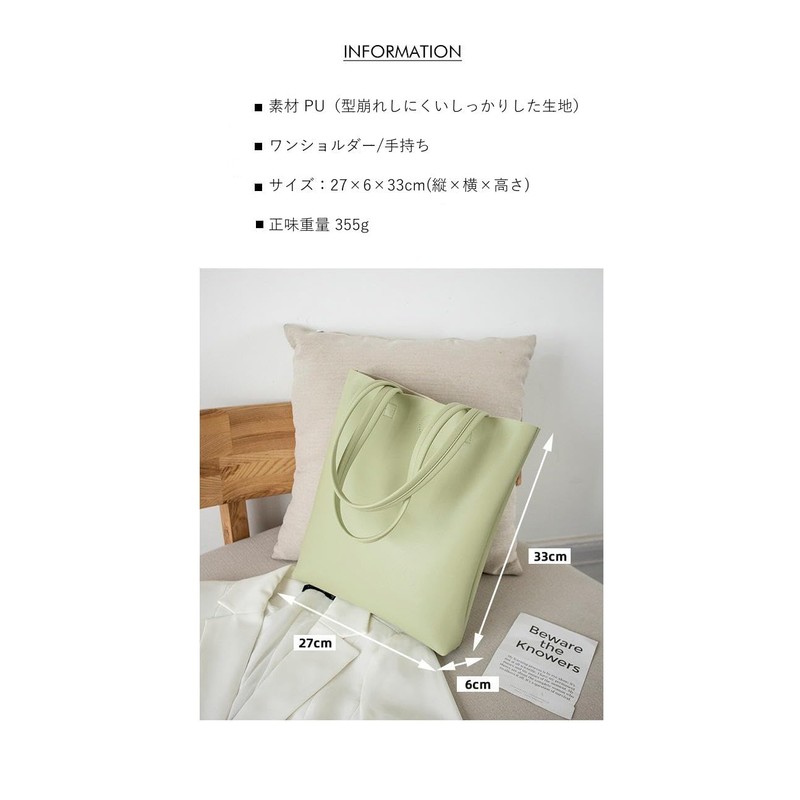goodspoon Tote Bag, Handbag, Vertical, Women's, Soft, Stylish, Simple, Lightweight, A4 Compatible, green