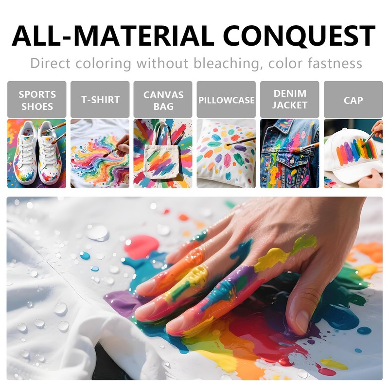 - Vibrant & Long-Lasting Colors - This fabric paint delivers rich, fade-resistant colors that stay bright even after repeated washing. Textile paint perfect for customizing clothes, shoes, bags, and home décor. Ideal for both light and dark fabrics.
