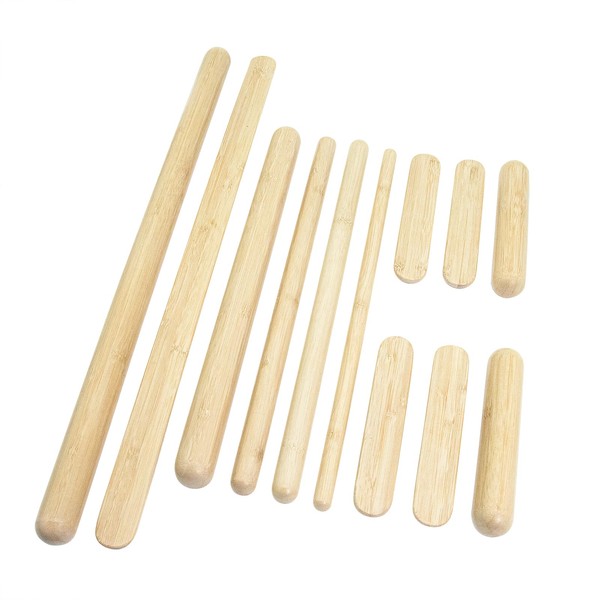 Goodtar 12 PCS Solid Bamboo Massage Stick Sets Warm Bamboo Therapy Massage Tools Guasha Tools for Body Sculpting Use at Home/Professional Massage Studio