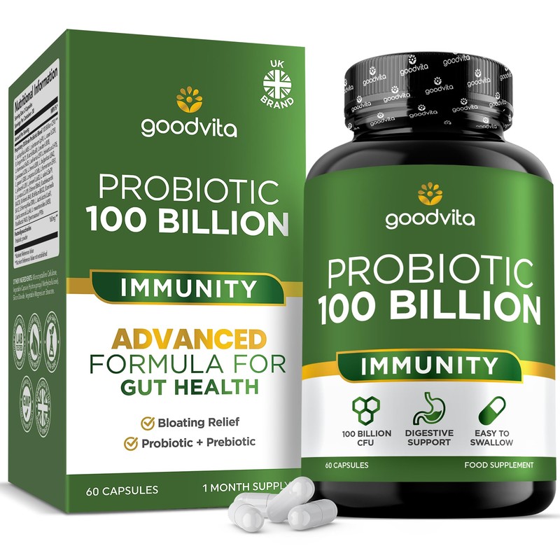 Goodvita Goodvita Probiotics for Gut Health | UK Made | High Strength 100 Billion CFU | 60 Capsules, 1 Month Supply | Digestive + Immunity Support | 30 Live Strain Complex Inc Prebiotics | Women + Men