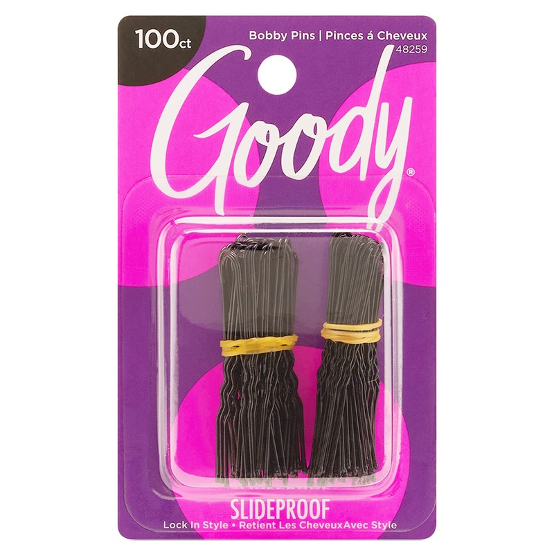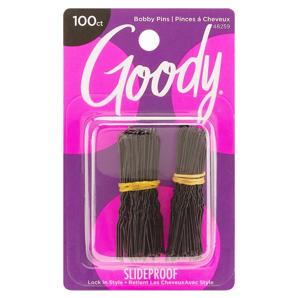 Goody Styling Hair Bobby Pins - 100 Count, Black - Slideproof and Lock-In Place - Suitable for All Hair Types - Pain-Free Hair Accessories for Women and Girls - All Day Comfort