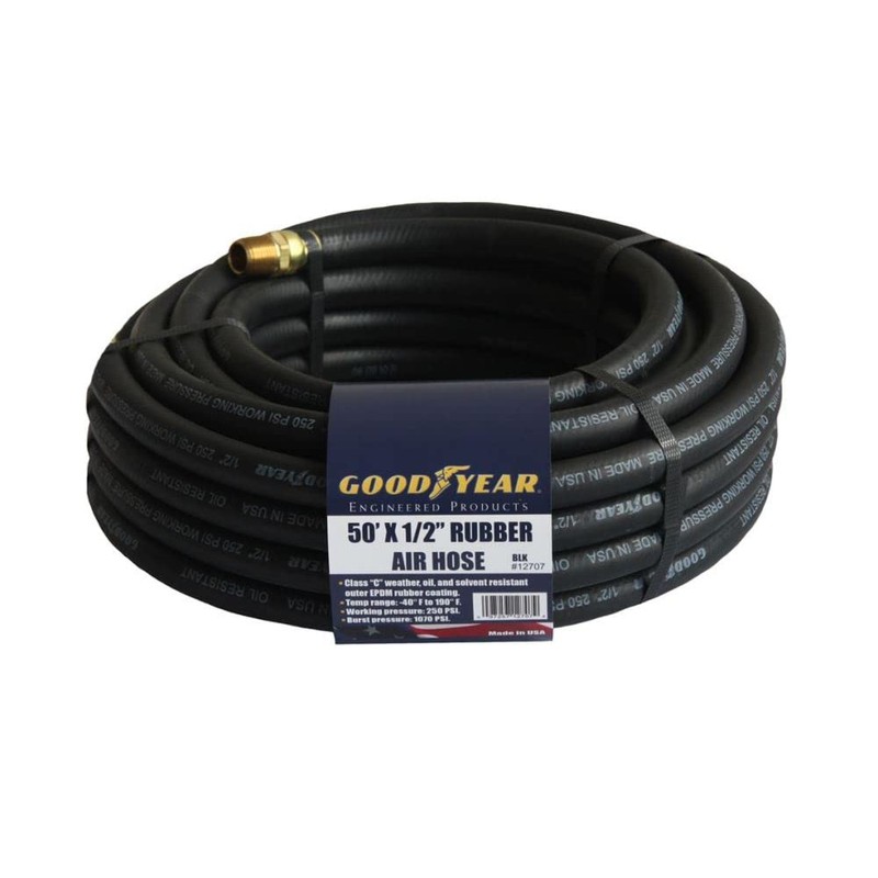Goodyear 50' x 1/2" Rubber Air Hose Black, 250 Psi, Made in USA