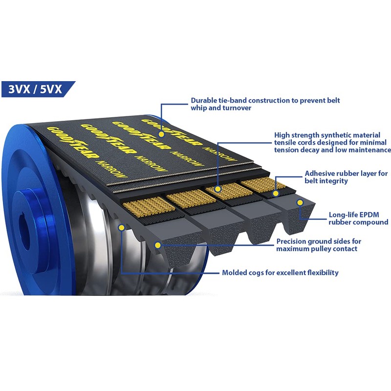 - Restore your belt drive system’s efficiency by installing a new Goodyear Belt