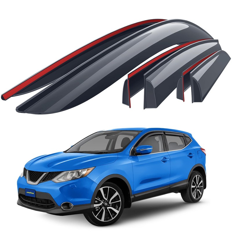 Goodyear Shatterproof Window Deflectors for Nissan Rogue Sport 2017-2022, Tape-on Rain Guards, Window Visors, Vent Deflector Visor, Car Accessories,6 pcs. - GY008668
