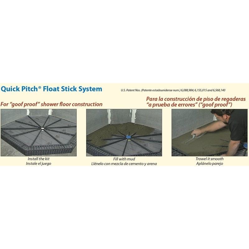 - SHOWER CONSTRUCTION - In order to install a proper shower floor, the base of the shower has to have a proper slope for drainage. Quick Pitch Standard Kit permits construction of standard 36" x 60" shower areas with a centered drain, or custom shower areas where the drain is within 36" of each wall.