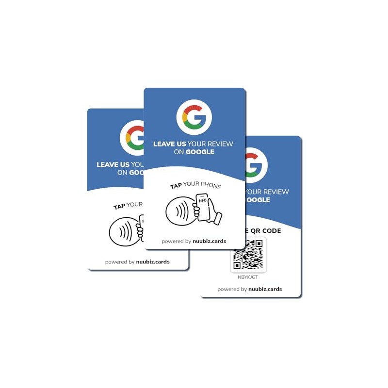 Google Review Tap Card (3 pack) by NUUBIZ - Enable NFC & QR Code Sign - All Phones Compatible - For All Businesses to Boost Reviews - Promote Your Brand - Blue (3)