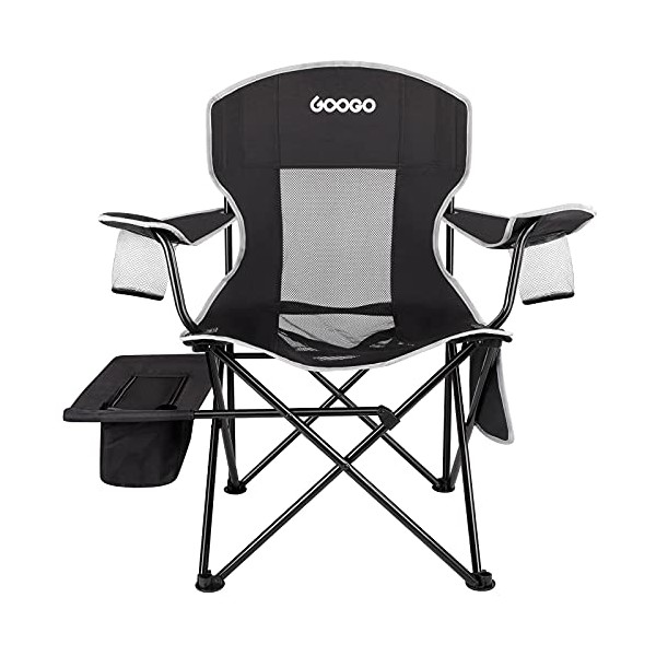 Googo Camping Chair Folding, Oversize Portable Lightweight Chair with Cooler, Cup Holder, Mesh Back Seat, Supports 300lbs, Collapsible Compact Chair with Carry Bag & Strap for Outdoor, Camp, Hiking