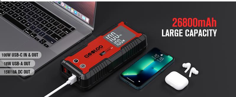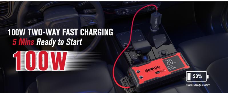 GOOLOO GT4000S Jump Starter 4000 Amp Car Starter 100W Two-Way Fast-Charging Portable Car Battery Charger Booster Pack for 10L Diesel and 12L
