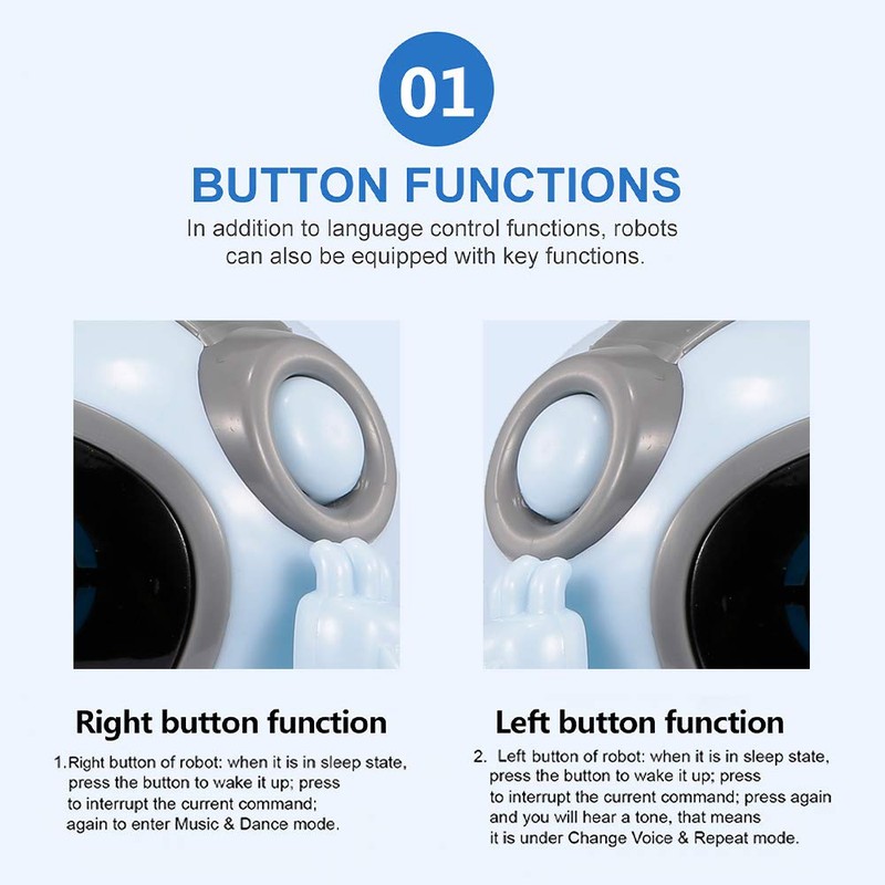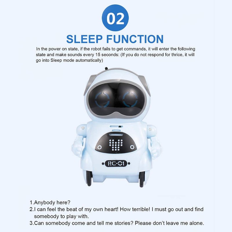 • Repeat Mode: pocket robot can record your voice and repeat to you with robotic sound effect, not noisy