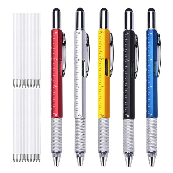 GOOMAND Multifunction Ballpoint Pen Screwdriver Leveler Vernier Calipers Scale with Stylus Pen Multi Tool Pen 20pcs Replacement Refill