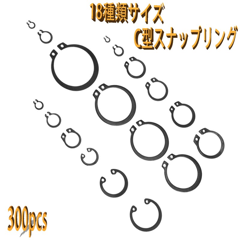 GOOMAND Snap Ring, 300 Pieces, 18 Types of C-Ring, Retaining Snap Ring, Circlip Kit, C-Shaped Retaining Ring, Fixing Parts