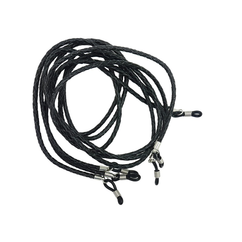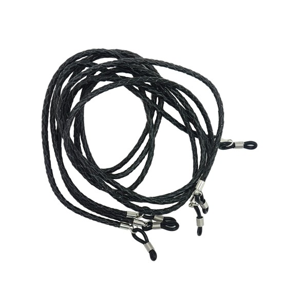 GoOptical Real Leather Platted Spectacle Cords with Traditional Adjustable Fasteners (Black x3)