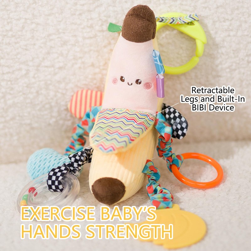 - đ¶ ăAnimal Shape & Hanging Designă- This baby toy has a cute design - the hanging toy includes 4 hanging parts, a teether ring to relieve baby's teething discomfort, a rustling paper rattle to attract baby's attention, a small cotton ball that baby can squeeze to make baby-like sounds, and a ring rattle for your convenience to hold.
