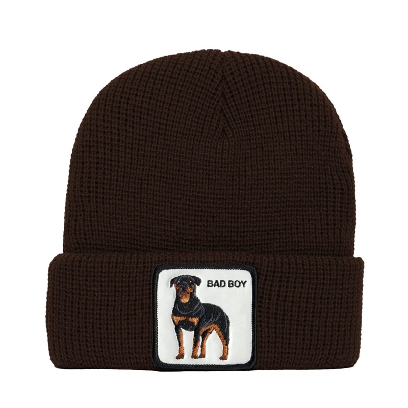 - Double-sided acrylic knit hat with embossed patch on the front. Animal Patch by The Farm for Goorin Bros.