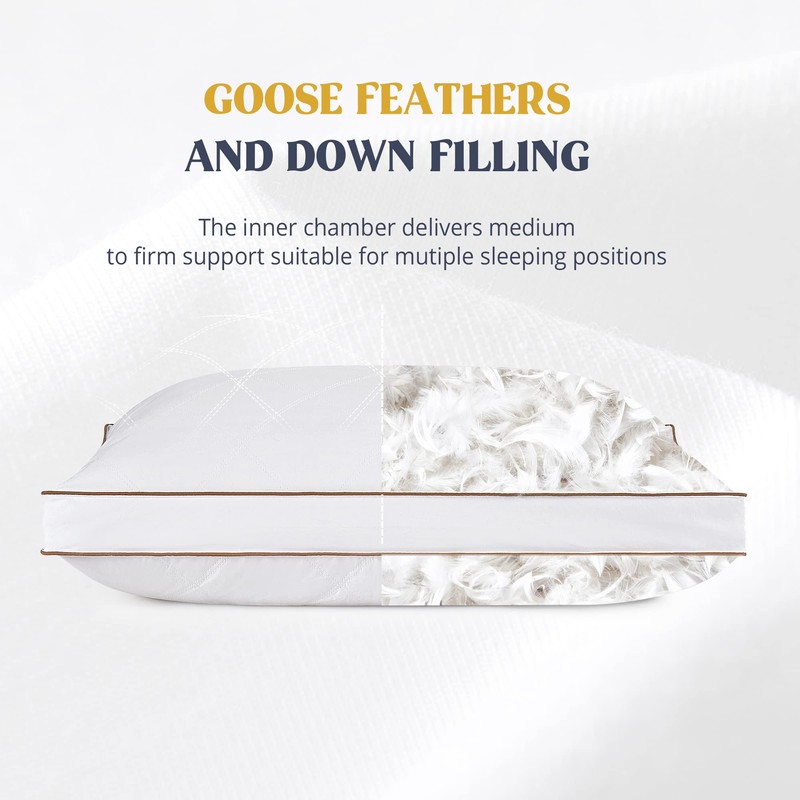 - 💡 SIZE & FILLING - Made with 95% goose feathers and 5% goose down. These carefully selected extra fluffy stuffing provide comfort for a night of better sleep and blissful dream. Available in king (20x 36 in), queen (20 x 30 in) and standard (20 x 28 in) sizes.