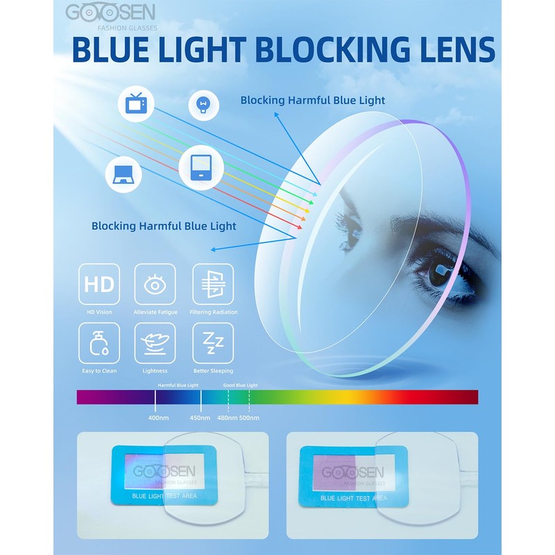 - 1. Blue Light Blocker: Our reading glasses come with anti blue light and clear lenses that effectively block harmful radiation from computer screens, phones, and TVs, reducing visual fatigue, headaches, and other eye problems.