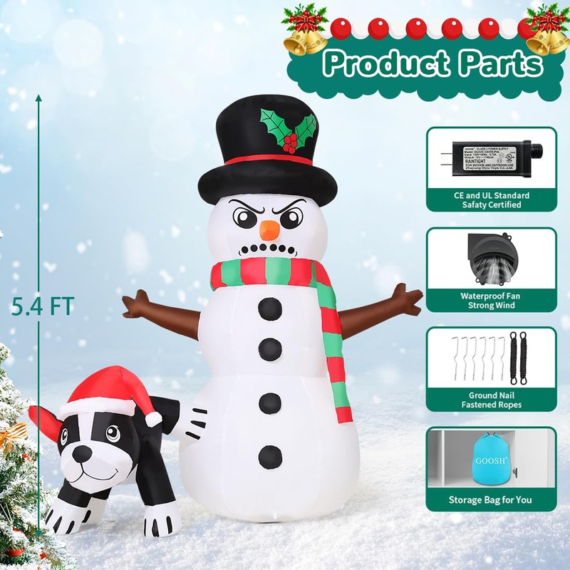 GOOSH 5.4 FT Christmas Snowman Inflatables Outdoor Decorations Funny Snowman with Peeing Dog Blow Up Yard with Built-in LEDs for Christmas Party Yard Garden Lawn Decoration