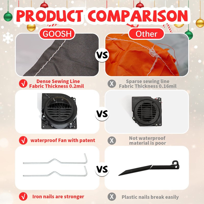 - đăPerfect Size & ComponentsăThe size of 7 FT Halloween inflatable is perfect for outdoor or indoor use. No worries about if this inflatable might fly away by the wind. Beside blower and storage bag, we are providing the stakes and the ropes to secure to the tree or wall. Moreover, zip up the bottom zipper to avoid air leakage, otherwise, open the zipper for fast deflate.