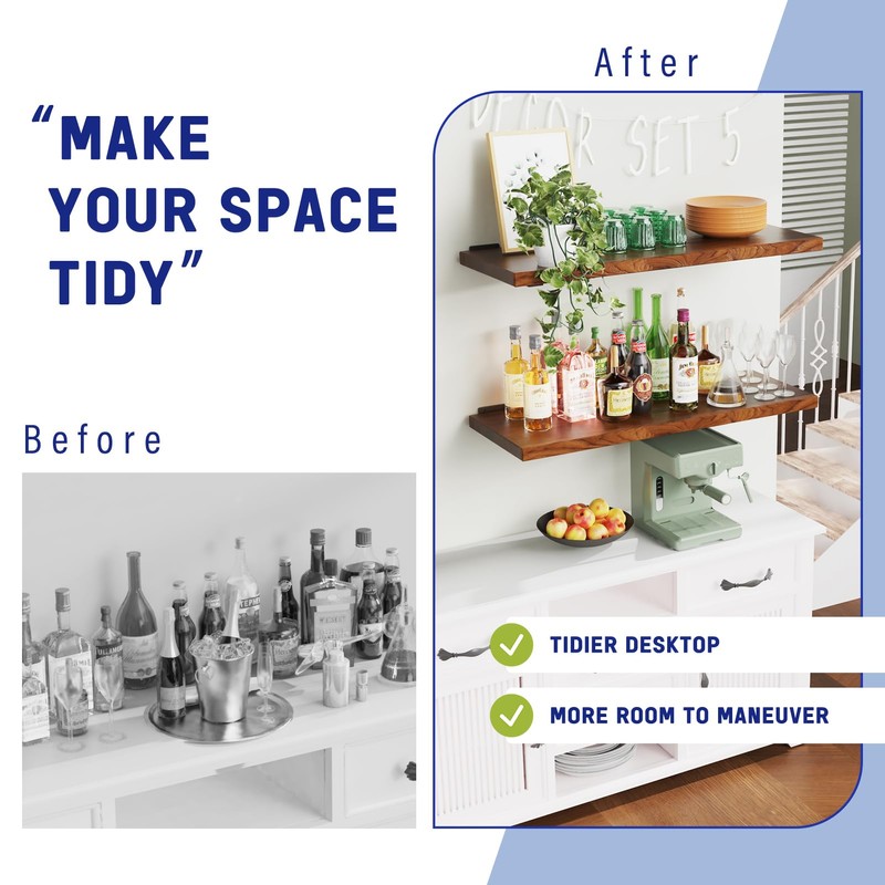 - 【Unrestricted Space Usage】We provided 6in, 8in, 10inch and 12inch brackets for floating shelves. Pick the right bracket or use it in combination depending on the actual space or the size of the planks. Hanging shelf bracket is not limited to kitchen use only, is also for living rooms, bedrooms, bathrooms, storage rooms, utility rooms, checkrooms, laundry room and corners to store green plants, photo frames, handwork, books, toiletries, storage baskets, sundries or to be a cat climbing frame.