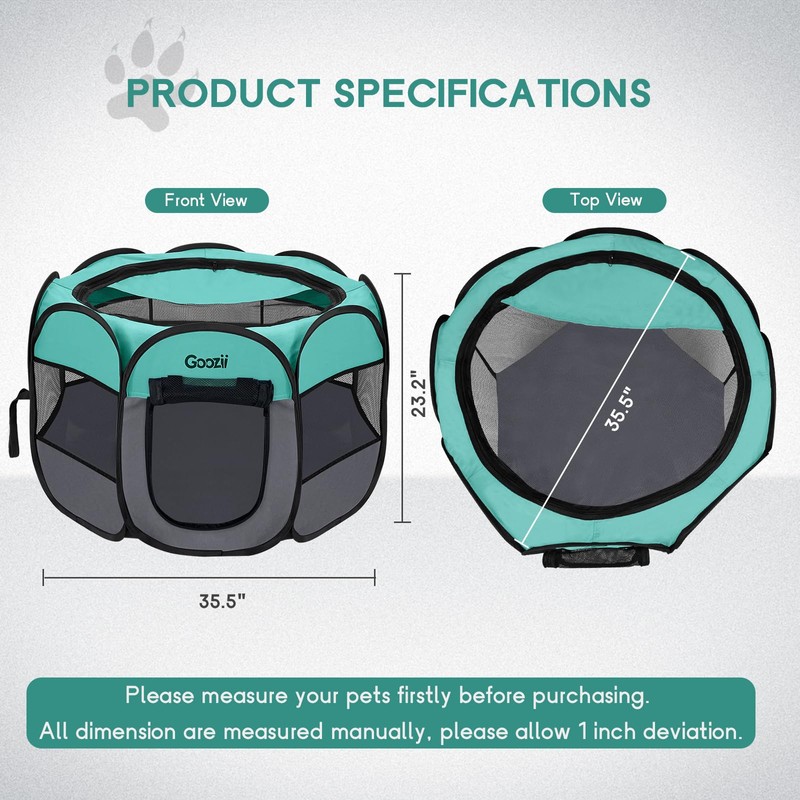Goozii Pet Cat Playpen for Indoor Cats Enclosed, Puppy Dog Play Pen for Outdoor Travel Camping (Small Size, Green & Dark Grey)