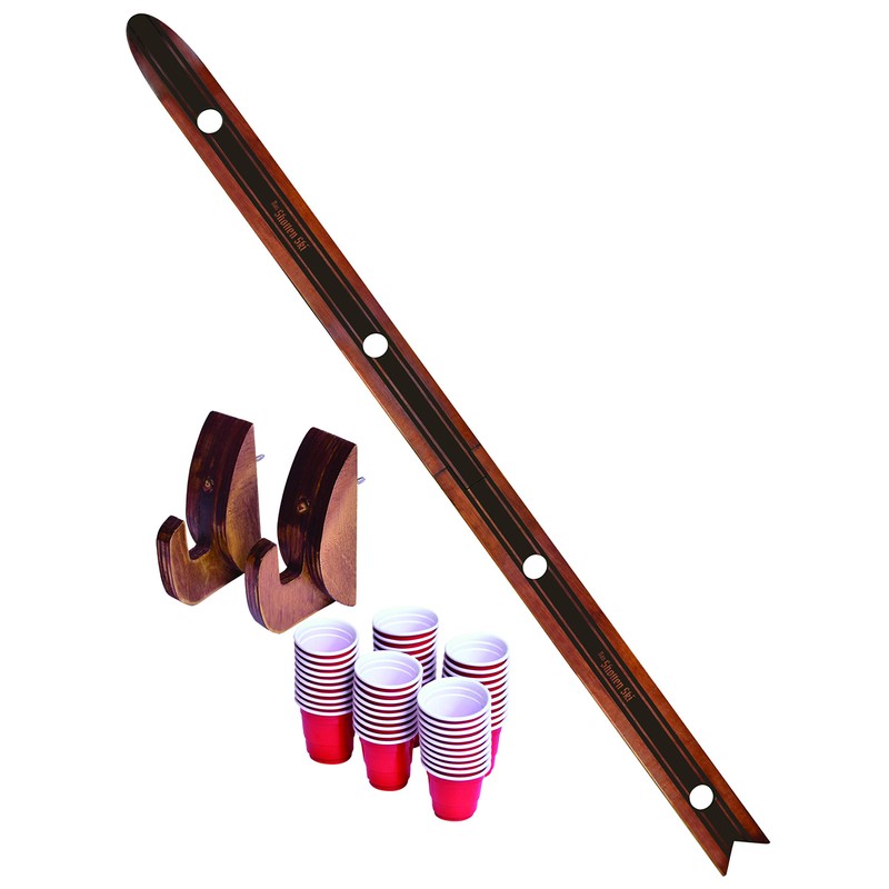 GoPong Das Shotten Ski - Rustic Wood 4 Person Drinking Ski with 50 Plastic Shot Glasses