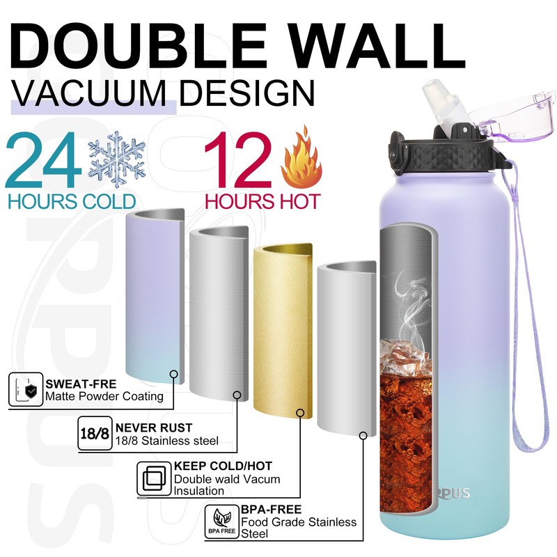- Water bottle with carrying strap: with straw lid and carrying strap, easy to take where you want, ideal gift choice for yourself, friends, family members, employees, women and men who enjoy a healthy lifestyle.