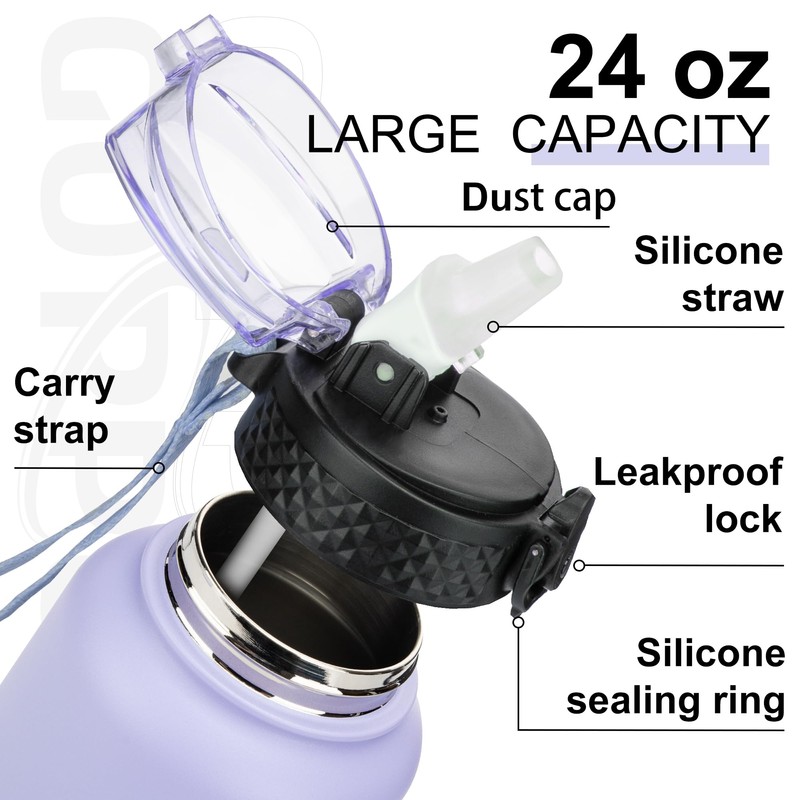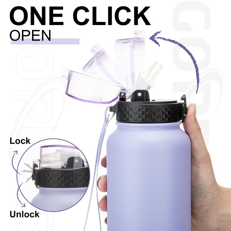 - Drink bottle with flip-top lid: this bottle comes with a flip top straw lid, simply designed with a secure closure, so it is dust-free and leak-proof. For one-handed use. With an air hole for smooth liquid flow, no squeezing.