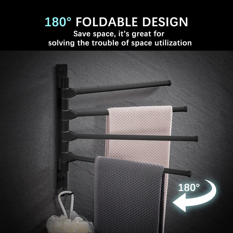 • 180° rotating arms: 4 hanging rods with length 29 cm are very practical for everyday use, e.g. for bath towel, hand towel etc