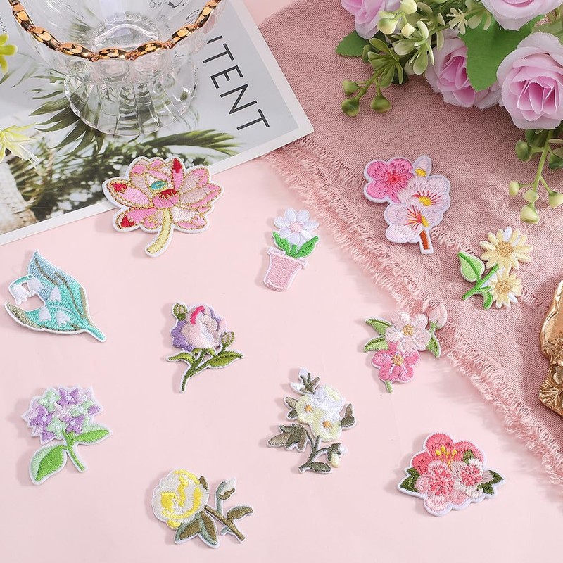 - 18 Styles Floral Embroidered Patch: These mini flower patches may be small, but vividly capture the true forms of various flowers like rose hydrangea sunflower daisy peach blossom lotus peony and can give you a feeling of being surrounded by a garden of flowers