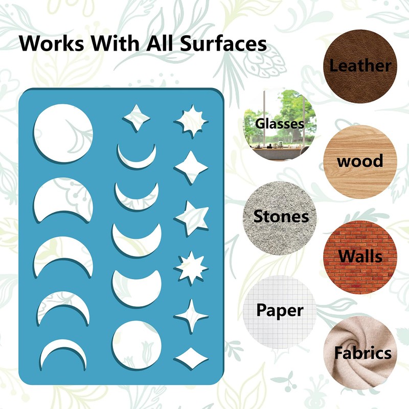 - 2 Styles Moon Phase Star Stencils: Set includes 2pcs 5.12x3.54 inch(13x9cm) jewelry template, designed with moon, moon phase, star, diamond, round.