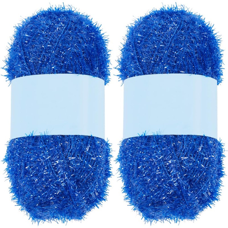 GORGECRAFT 200m 2 Rolls Sparkle Scrubby Yarn Bundle Steel Blue Metallic Scrubby Polyester Scrub Eyelash Yarn for Dishcloths Knitting Weaving Crochet Doll Hat Cleaning Tool Craft Project