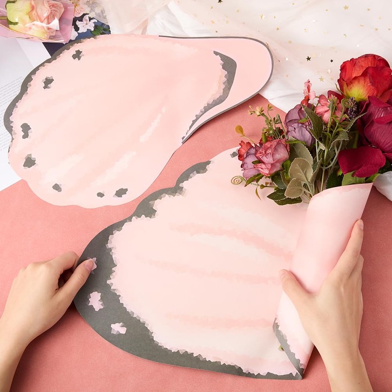 GORGECRAFT 20PCS Butterfly Bouquet Wrapping Paper Pink Flower Wrapping Papers Wing Shaped Floral Wraps Packaging Florist Supplies for Valentine's Day Wedding Birthday Flower Shop DIY Craft