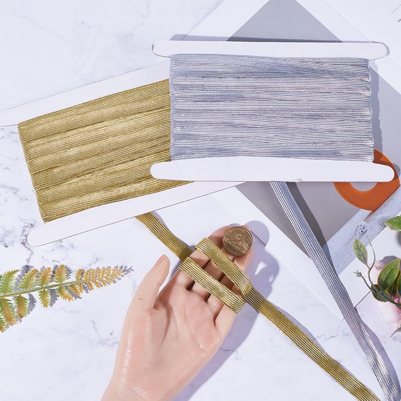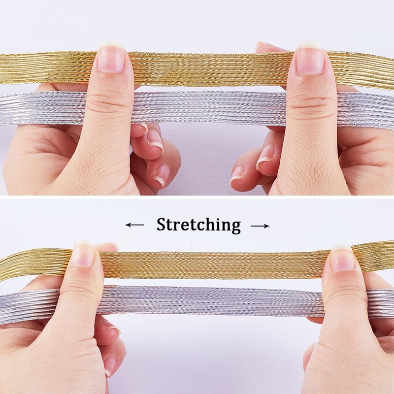 GORGECRAFT 24 Yard 2 Colours Elastic Band 12.5 mm Wide Glittering Metallic Band Flat Elastic Band Braided Stretch Band Elasticity Knitted Webbing Clothing Accessories Sewing