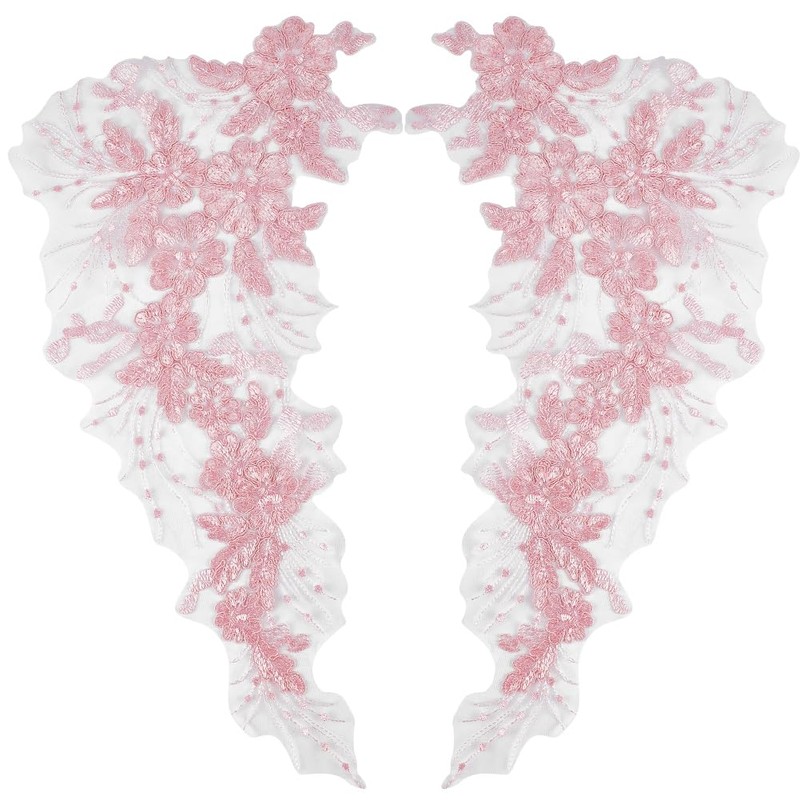 GORGECRAFT 2Pcs 3D Flower Lace Appliques Pink Sequins Embroidered Lace Sew on Applique Floral Motif Fabric Collar Trim Patches for Wedding Gown Bridal Dress Decor Clothing Pants Sewing DIY Crafts