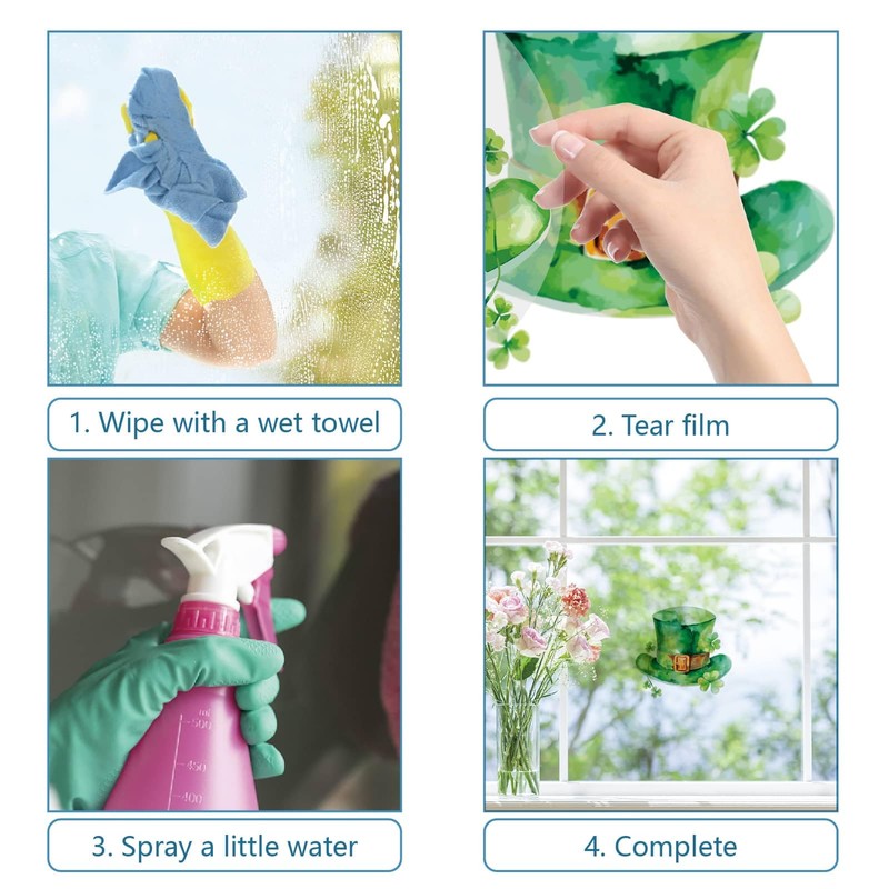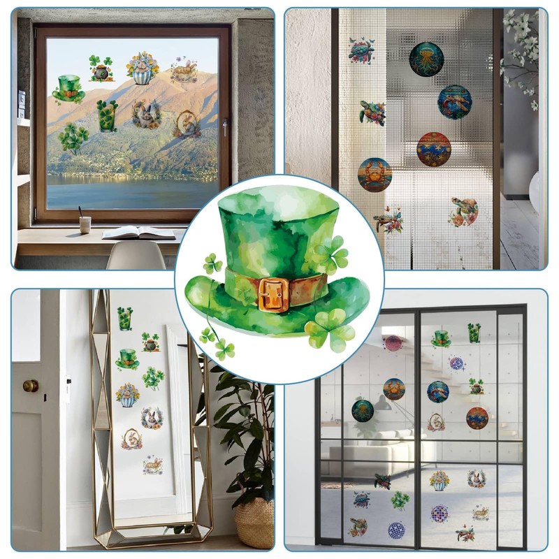 - 4 Styles Saint Patrick's Day Window Clings: There are 4 styles Saint Patrick's Day window clings, are different green shamrock pattern, has a strong Saint Patrick's Day atmosphere, is the perfect Saint Patrick's Day decorations