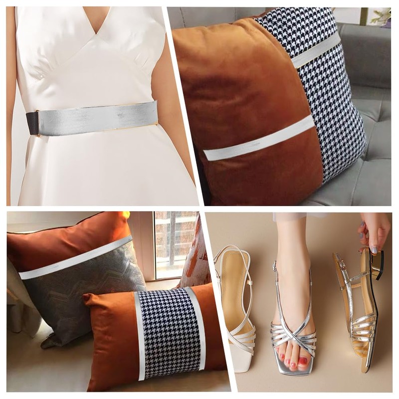 - 5.5Yds x 0.2" Metallic Leather Strips: Silver shiny leather strips roll about 5.47 Yards(5m)/bundle, 0.2"/5mm wide, 0.031"/0.8mm thick.