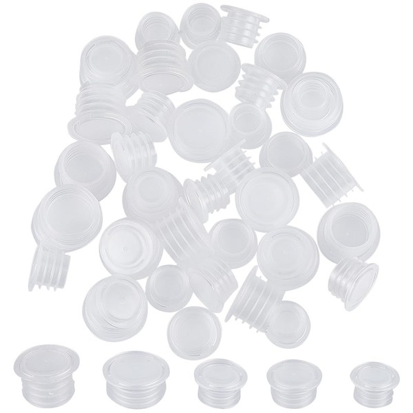 GORGECRAFT 50PCS 5 Sizes Clear Plastic Stopper with Pull Tab Salt and Pepper Shaker Stoppers Replacement Bottle Plug 10.5mm to 18mm Inner Diameter Reusable Column End Covers for Pots Bottles