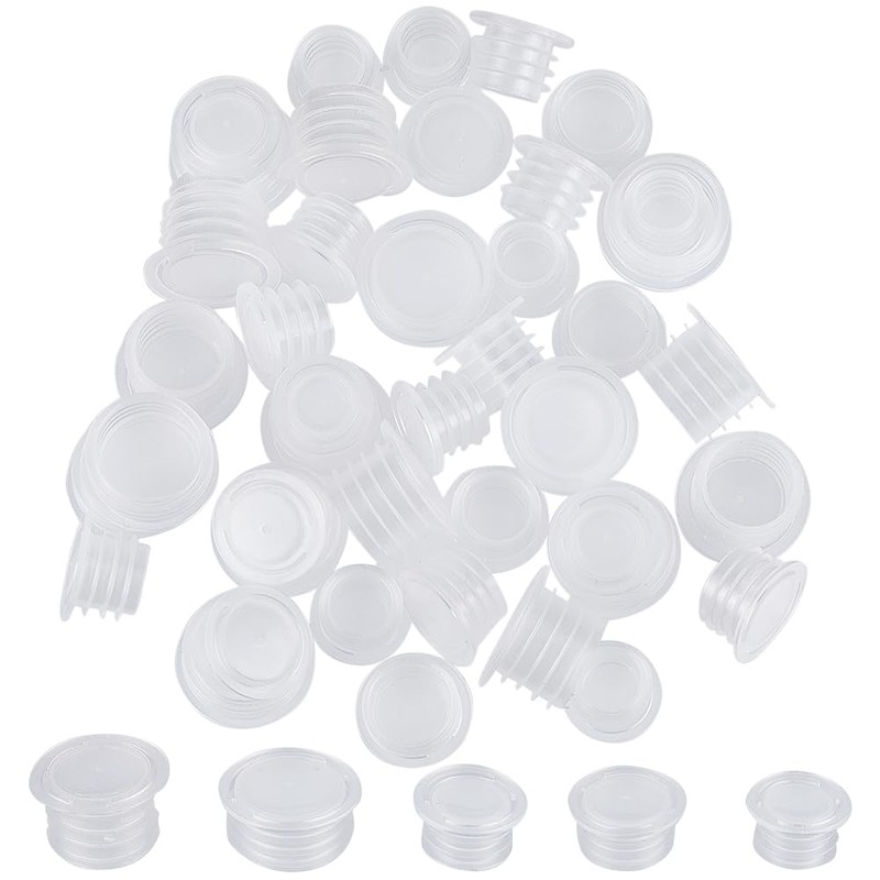 - 50PCS 5 SIZES STOPPERS: You will receive 50pcs column clear plastic stopper in 5 different sizes, about 10.5mm, 12mm, 13mm, 15mm and 18mm in inner diameter, each size contains 10pcs, quantity and size enough to meet your daily need