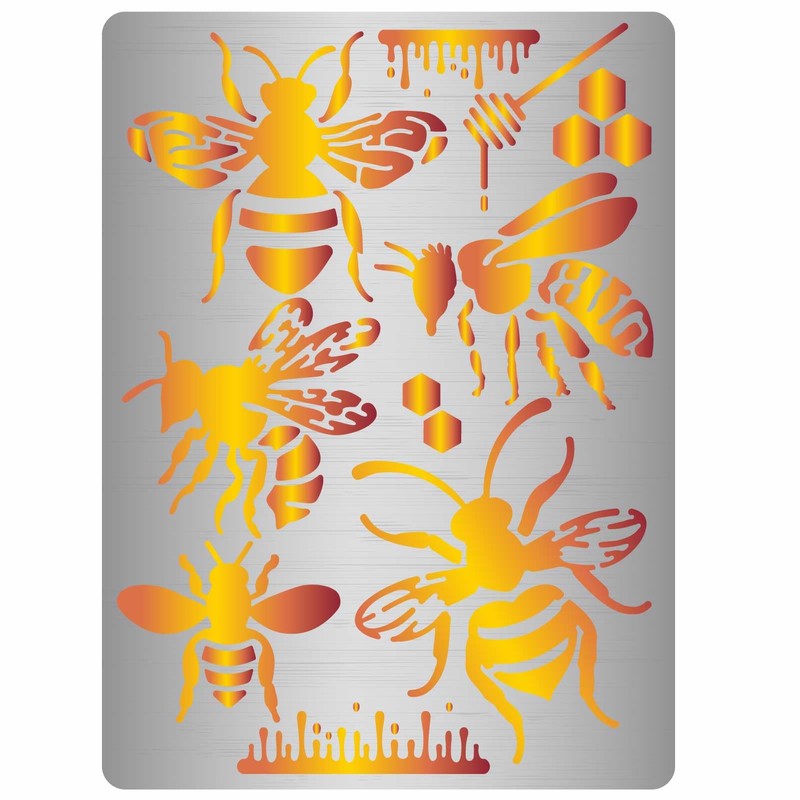 - Bee Metal Stencil: Package includes 1pc 7.48 x 5.51 inch(19 x 14cm) metal stencils themed about bee, including honey, honeycomb pattern, suitable for decorating farm